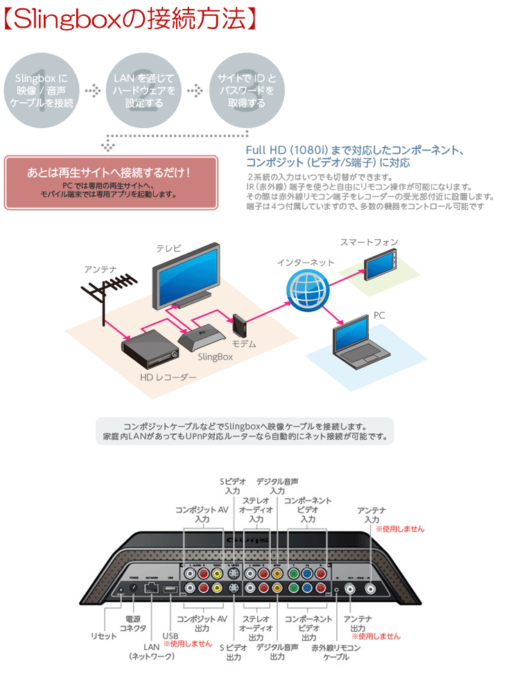 インターネット映像転送システム【「Slingbox PRO-HD」 PRO-HD」【接続方法】